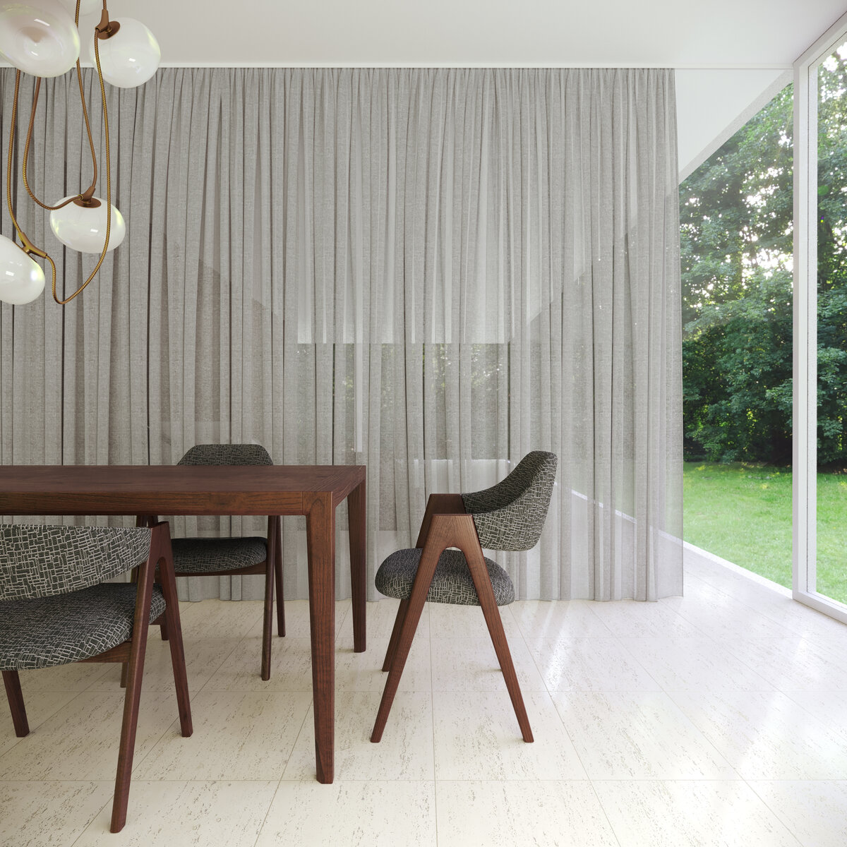 Laid-back, functional, sustainable. NEVA creates a homey atmosphere, provides privacy and is sustainable purely due to its durability and longevity. The recycled synthetics used in the fabric only serve to improve the sustainable credentials of this easycare and flame-retardant curtain even more. Ten relaxed colors to suit every living style and taste as well as ensuring a clear conscience.