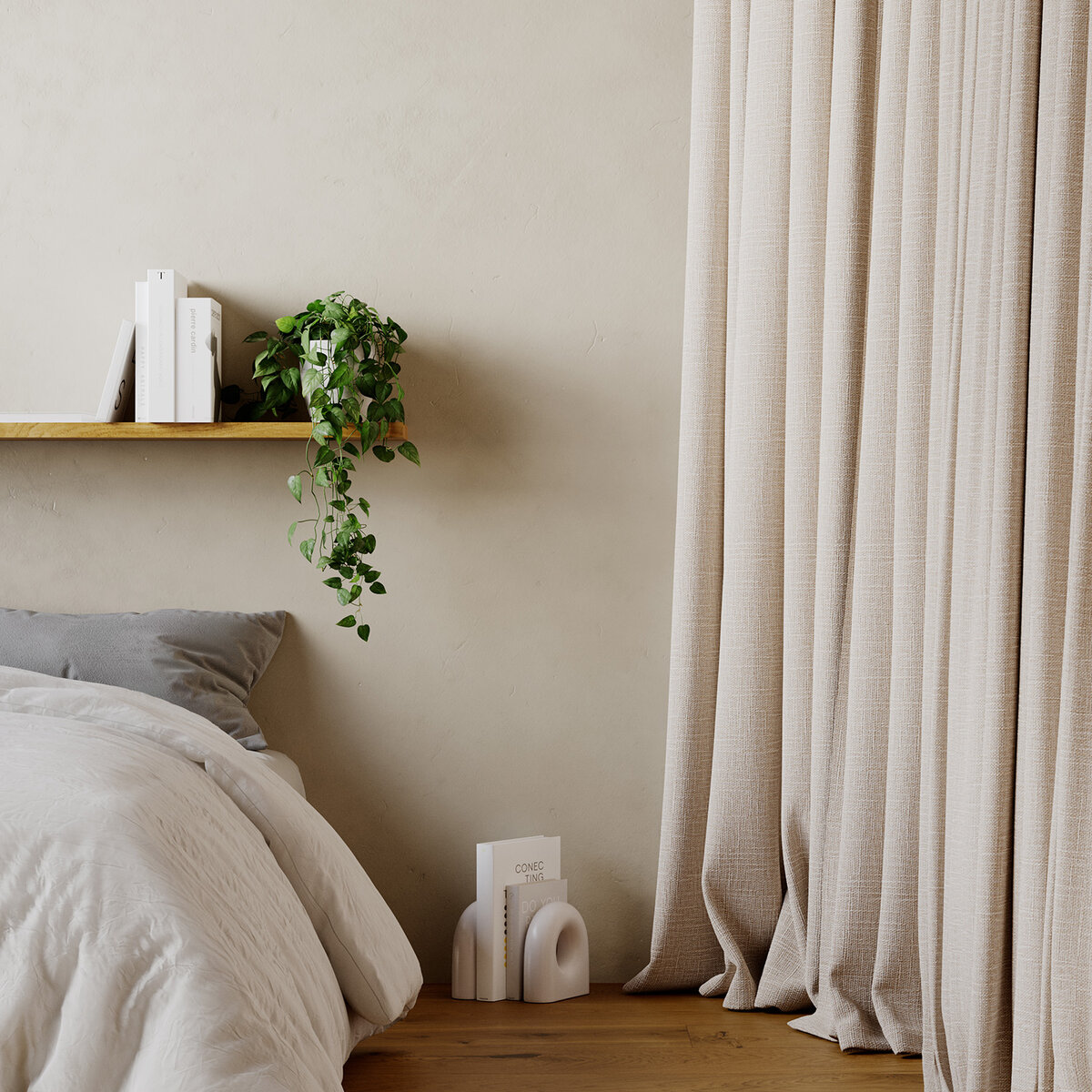 OUR FAVOURITE BLACKOUT will also be your favorite! Modern linen-look combined with 100% blackout and thermal effect. The textured surface with mélange is available in on-trend natural tones. A real looker, even if your eyes are closing as you contemplate it.