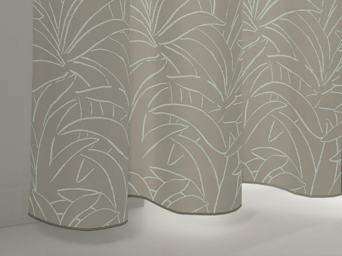 RAMA is full of sensuality. The noble shimmering satin background brings glamour. The discreet all-over leaf design makes a timeless statement. The raised, matt contour line gives a modern impression. Whoever touches RAMA will hear and feel silk-like rustling in five colours: from subtle, tonal and very natural to expressive, contrasting colours. The differences in weave in the base and patterning show a lively appearance, which is maintained by best care properties.