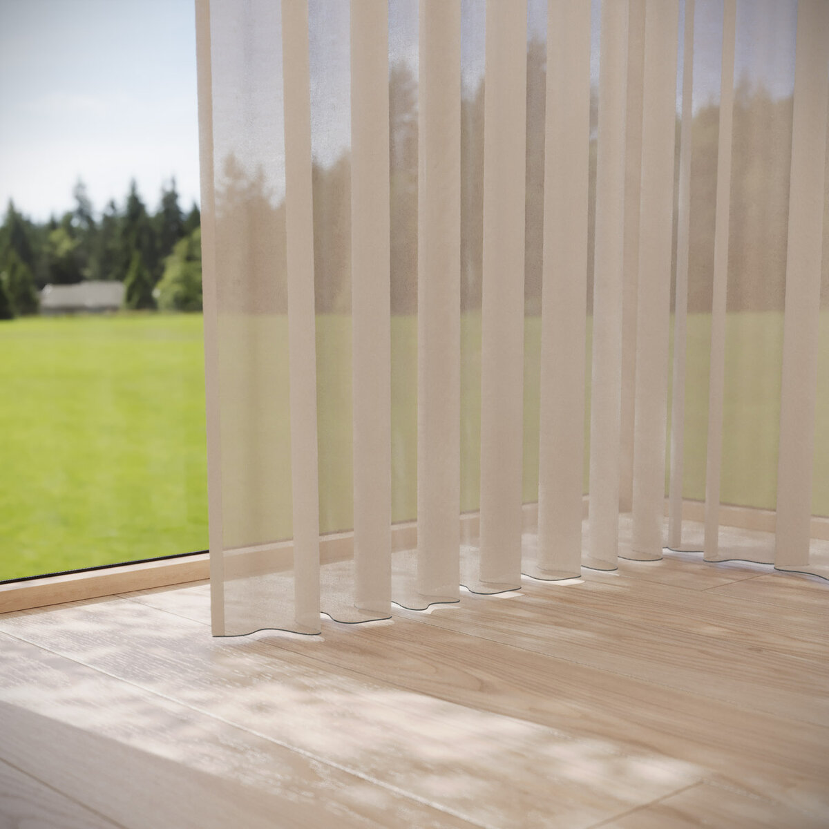 REFLEKT stands out with its iridescent color effects. Its interplay of warp and weft creates dynamic sophistication. The flame-retardant, sustainably produced sheer offers excellent glare and privacy control while maintaining high visibility—perfect for homes, offices and public spaces. A balanced fusion of design, function and color.