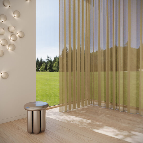 REFLEKT stands out with its iridescent color effects. Its interplay of warp and weft creates dynamic sophistication. The flame-retardant, sustainably produced sheer offers excellent glare and privacy control while maintaining high visibility—perfect for homes, offices and public spaces. A balanced fusion of design, function and color.
