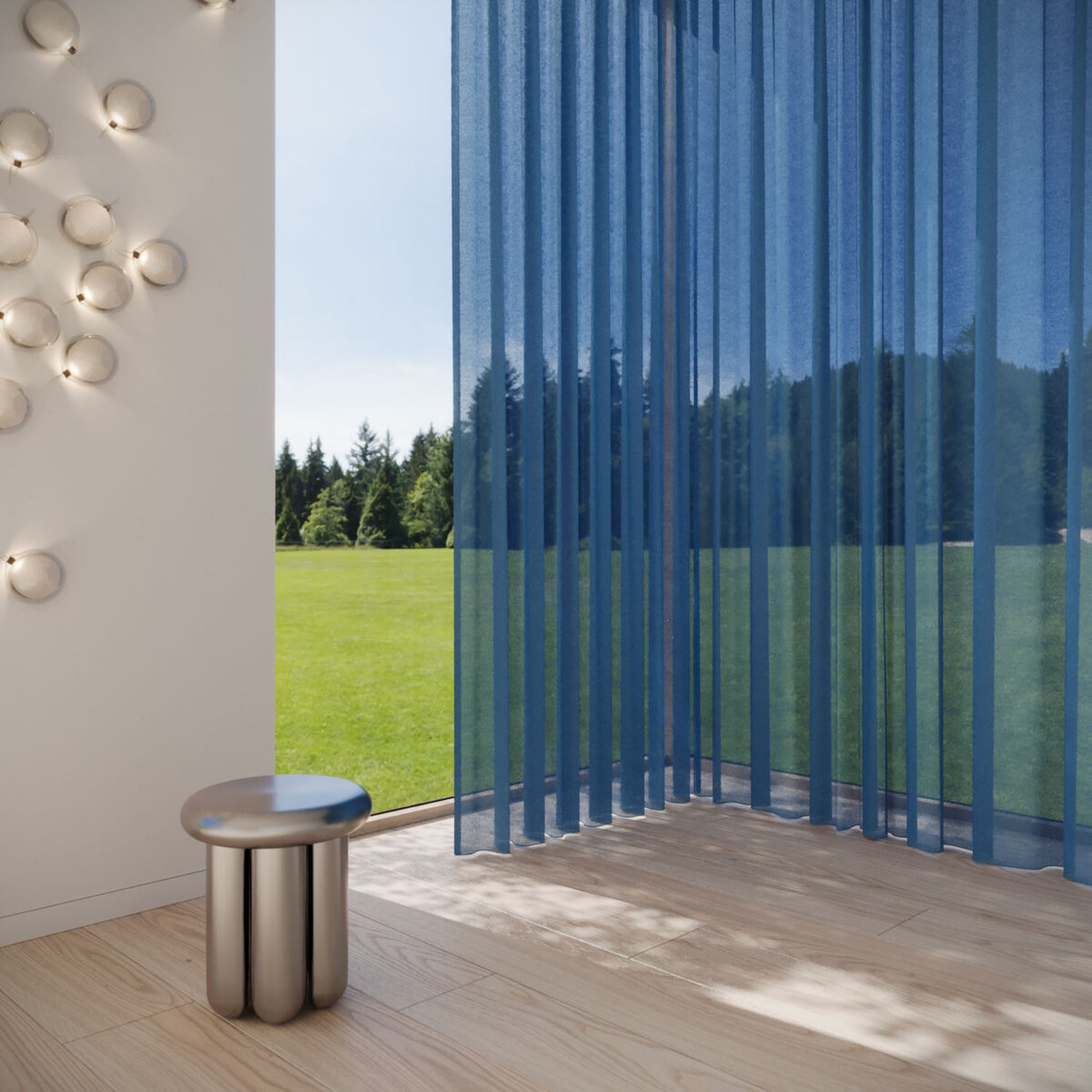 REFLEKT stands out with its iridescent color effects. Its interplay of warp and weft creates dynamic sophistication. The flame-retardant, sustainably produced sheer offers excellent glare and privacy control while maintaining high visibility—perfect for homes, offices and public spaces. A balanced fusion of design, function and color.