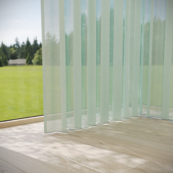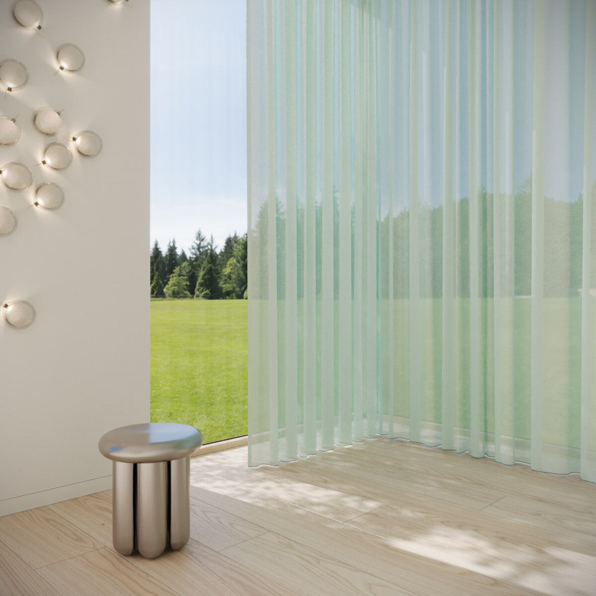 REFLEKT stands out with its iridescent color effects. Its interplay of warp and weft creates dynamic sophistication. The flame-retardant, sustainably produced sheer offers excellent glare and privacy control while maintaining high visibility—perfect for homes, offices and public spaces. A balanced fusion of design, function and color.