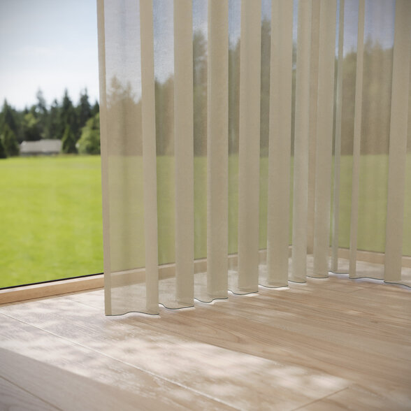 REFLEKT stands out with its iridescent color effects. Its interplay of warp and weft creates dynamic sophistication. The flame-retardant, sustainably produced sheer offers excellent glare and privacy control while maintaining high visibility—perfect for homes, offices and public spaces. A balanced fusion of design, function and color.