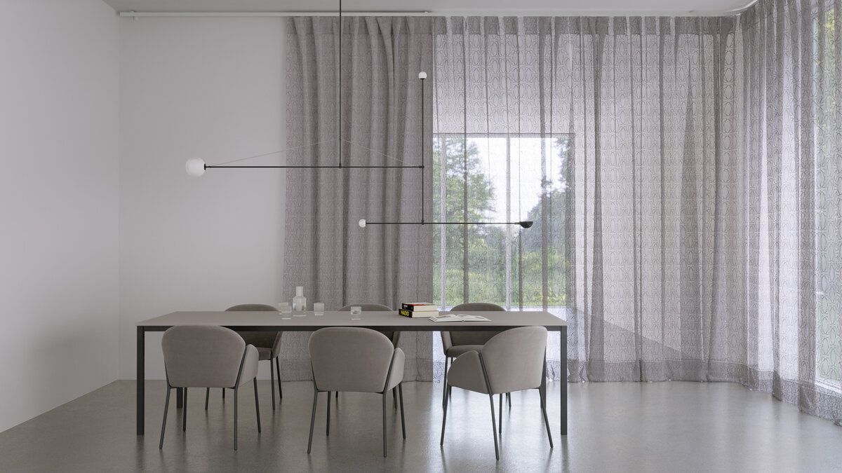 REWIND is the epitome of fashion-forward. A textile stripe in a laidback two-tone mix is appliquéd onto the fabric, highlighting its soft transparence. The soft rhythmic allover graphic design ensures good moods all round. Take the floor-to-ceiling and easy-clean REWIND home. And then let it play!