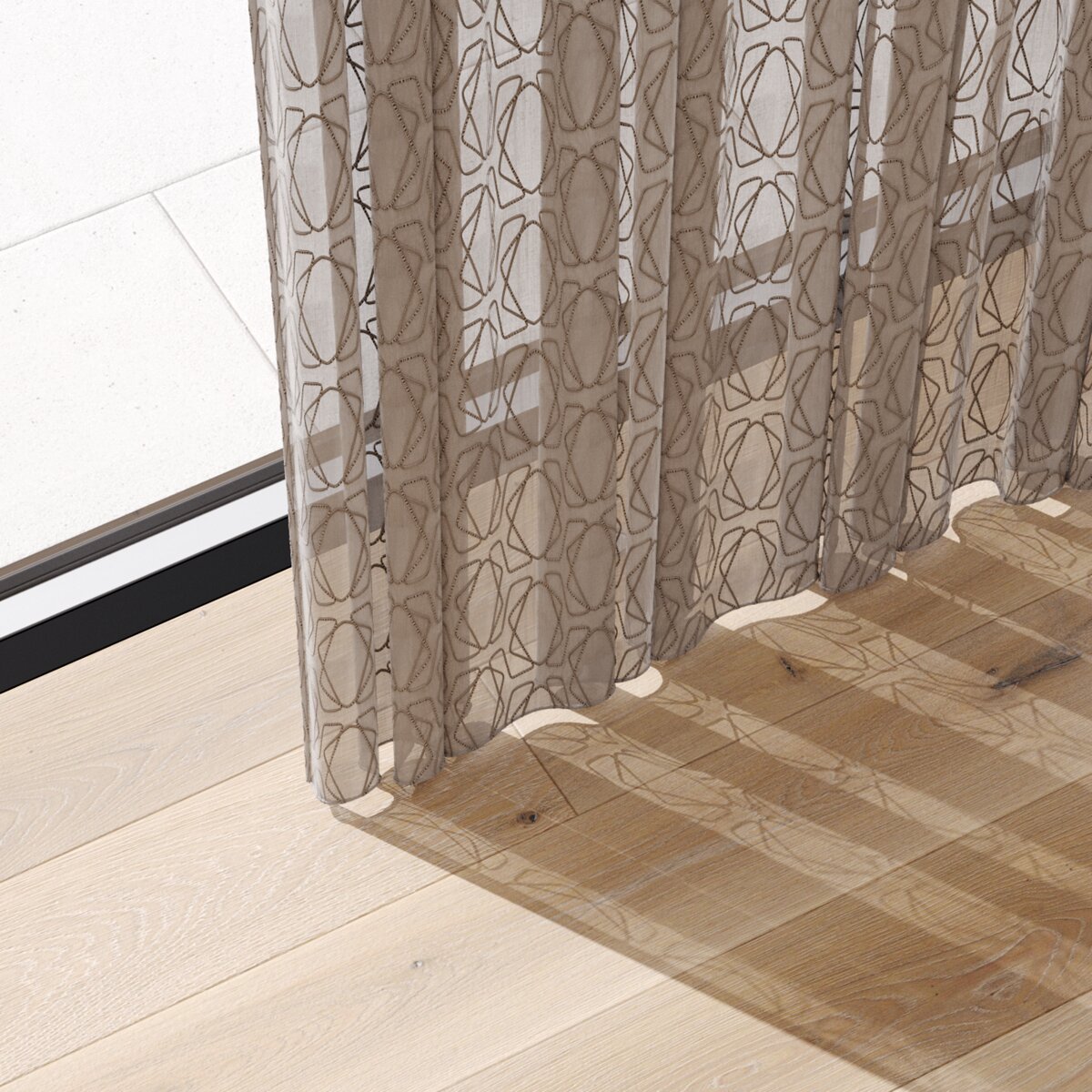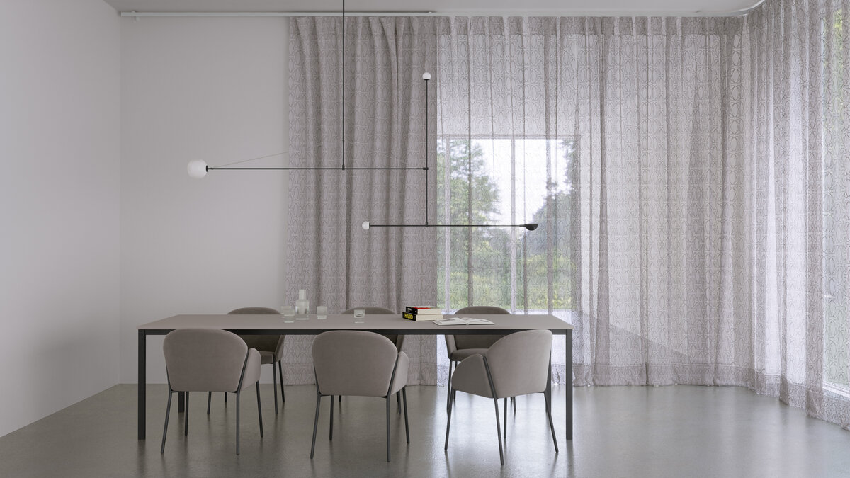 REWIND is the epitome of fashion-forward. A textile stripe in a laidback two-tone mix is appliquéd onto the fabric, highlighting its soft transparence. The soft rhythmic allover graphic design ensures good moods all round. Take the floor-to-ceiling and easy-clean REWIND home. And then let it play!
