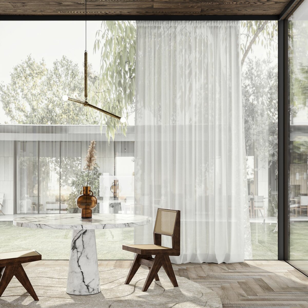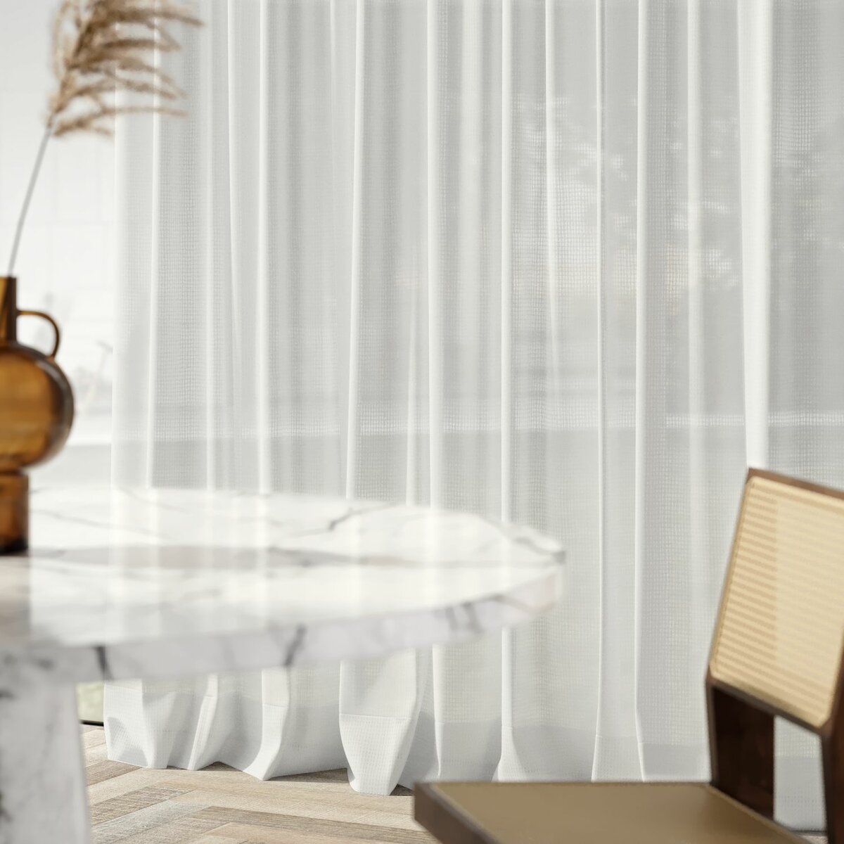 Semifreddo, with its soft pastel colors and unique net structure, adds a relaxed vibe to any room. A blend of 97% polyester and 3% linen, this fabric offers delightful transparency and a casual, light drape.