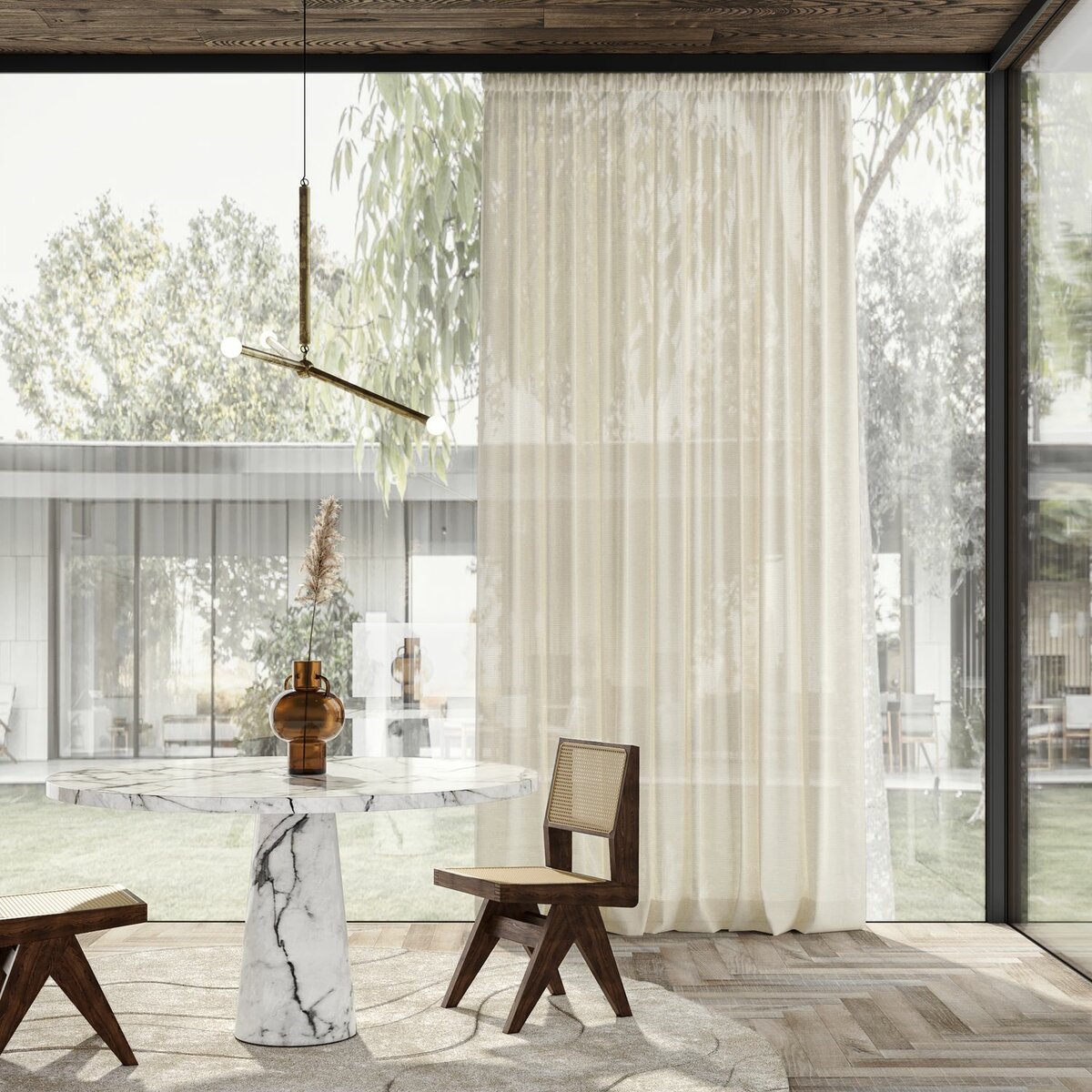 Semifreddo, with its soft pastel colors and unique net structure, adds a relaxed vibe to any room. A blend of 97% polyester and 3% linen, this fabric offers delightful transparency and a casual, light drape.