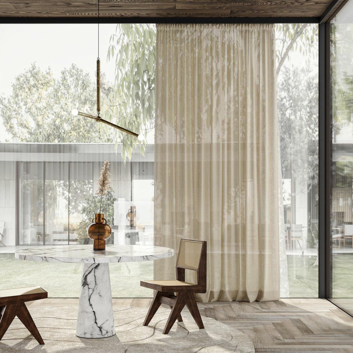 Semifreddo, with its soft pastel colors and unique net structure, adds a relaxed vibe to any room. A blend of 97% polyester and 3% linen, this fabric offers delightful transparency and a casual, light drape.