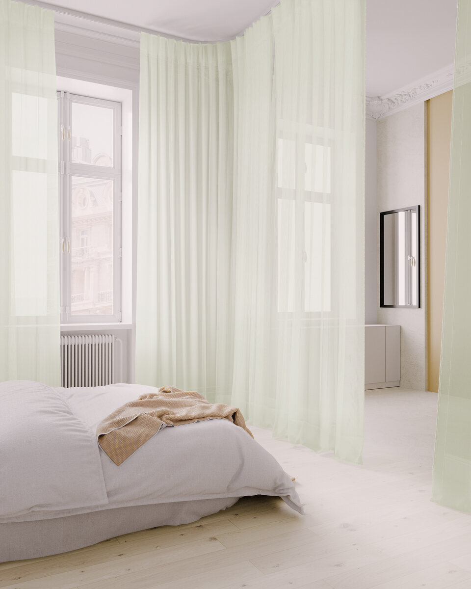 SKYE, your heaven on earth when it comes to transparent fabrics. Filigree and super lightweight and highly translucent. The fabric is named after the Isle of Skye in Scotland. The summery breeze of fabric packs a punch of nature and a sensual feel.