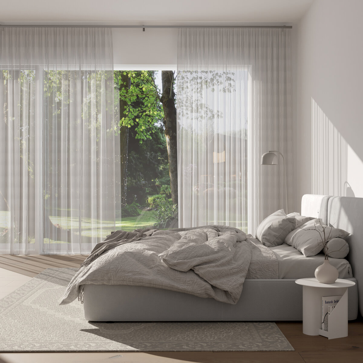 SORA, your own personal sunrise. Modern graphic embroidery in restrained vertical blocks will put a smile on your face every day. Also worthy of a smiley: the easy-care fabric can be quickly washed and ironed.