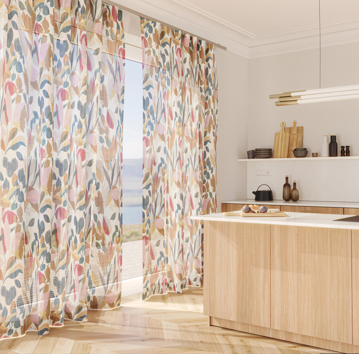 A floral design kissed by the sun. SUMMER packs a punch with temperamental garden flair. The abstract floral motif will bring summer to your home with harmonious rustic color blocks. The mixed-yarn fabric with natural-fiber content makes SUMMER a relaxed fabric. An additional eye-catcher: The stripes in the base fabric are of varied thickness with transparencies bringing an added edge.