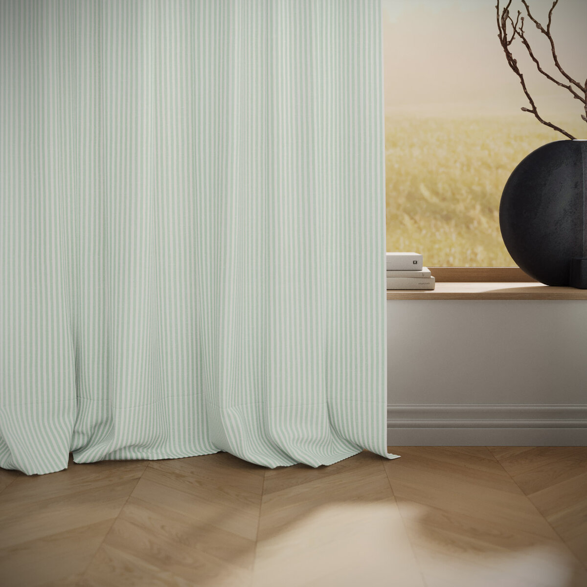 SUMMER STRIPE brings an instant mood lift. The airy stripe feels modern, light and surprisingly versatile, almost like a textured solid. The easy-care technical fiber looks and feels like linen while remaining stable and durable. A broad palette invites endless combinations—summer, distilled into fabric.