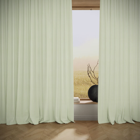 SUMMER STRIPE brings an instant mood lift. The airy stripe feels modern, light and surprisingly versatile, almost like a textured solid. The easy-care technical fiber looks and feels like linen while remaining stable and durable. A broad palette invites endless combinations—summer, distilled into fabric.