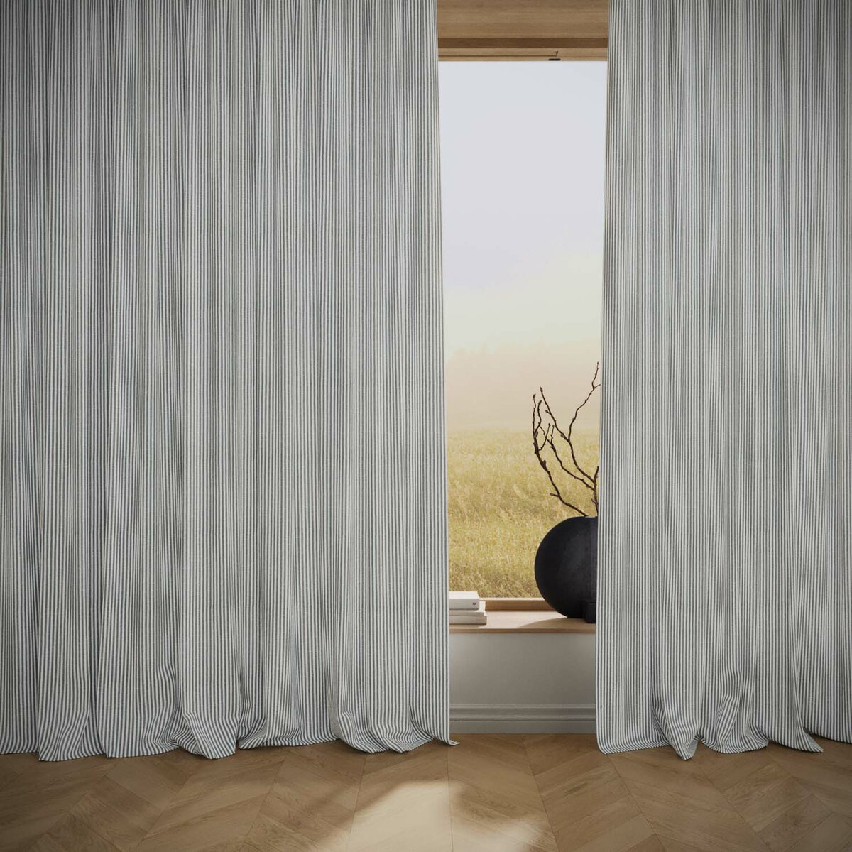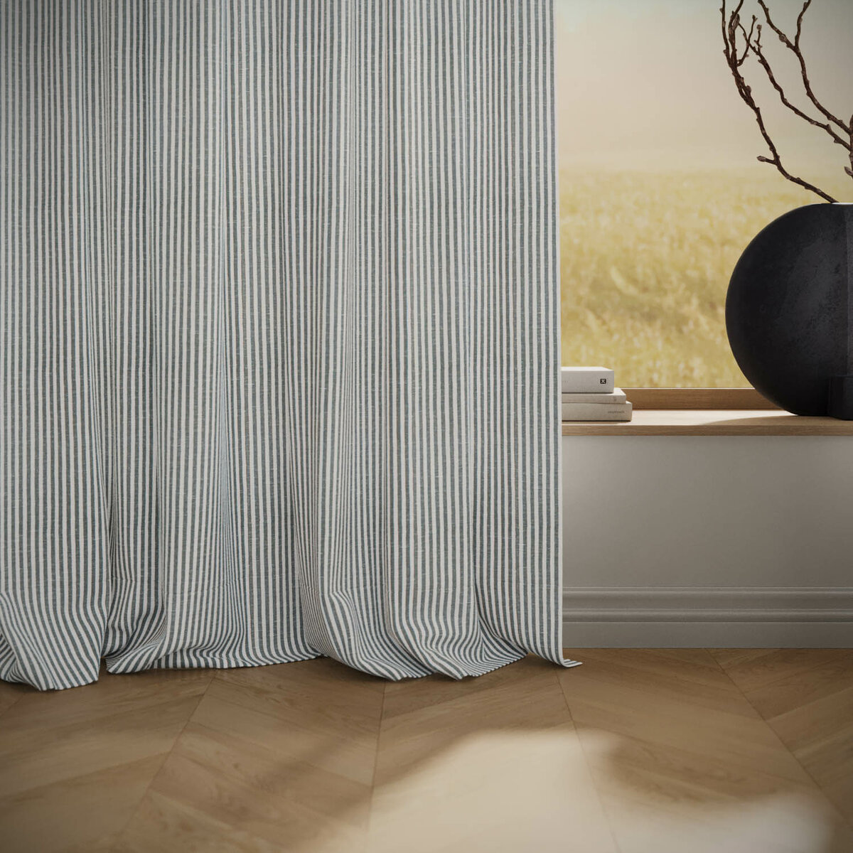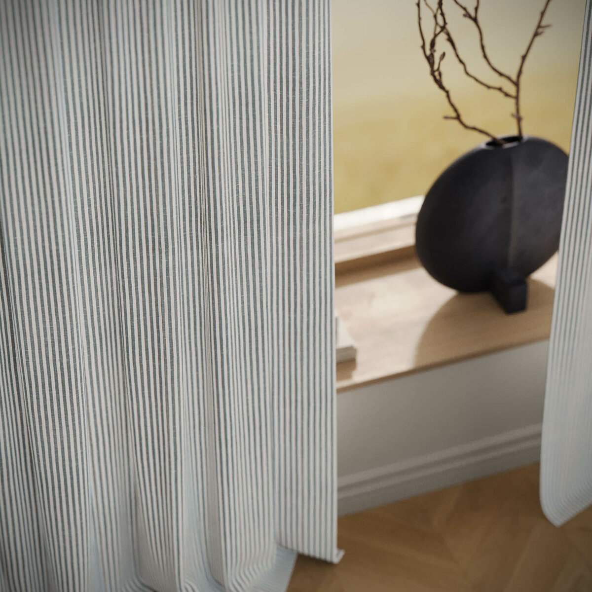 SUMMER STRIPE brings an instant mood lift. The airy stripe feels modern, light and surprisingly versatile, almost like a textured solid. The easy-care technical fiber looks and feels like linen while remaining stable and durable. A broad palette invites endless combinations—summer, distilled into fabric.