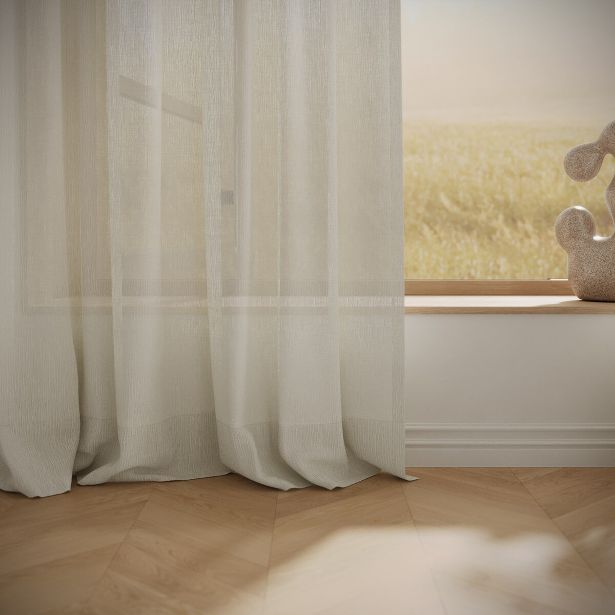 TACTILE is all about emotion. Creative jacquard constructions sculpt light and shadow into a surface that feels alive—refined, natural, sensory. With shades ranging from winter white to sandy neutrals, the fabric brings serenity and depth to interiors. Its texture is as compelling to the touch as it is to the eye.