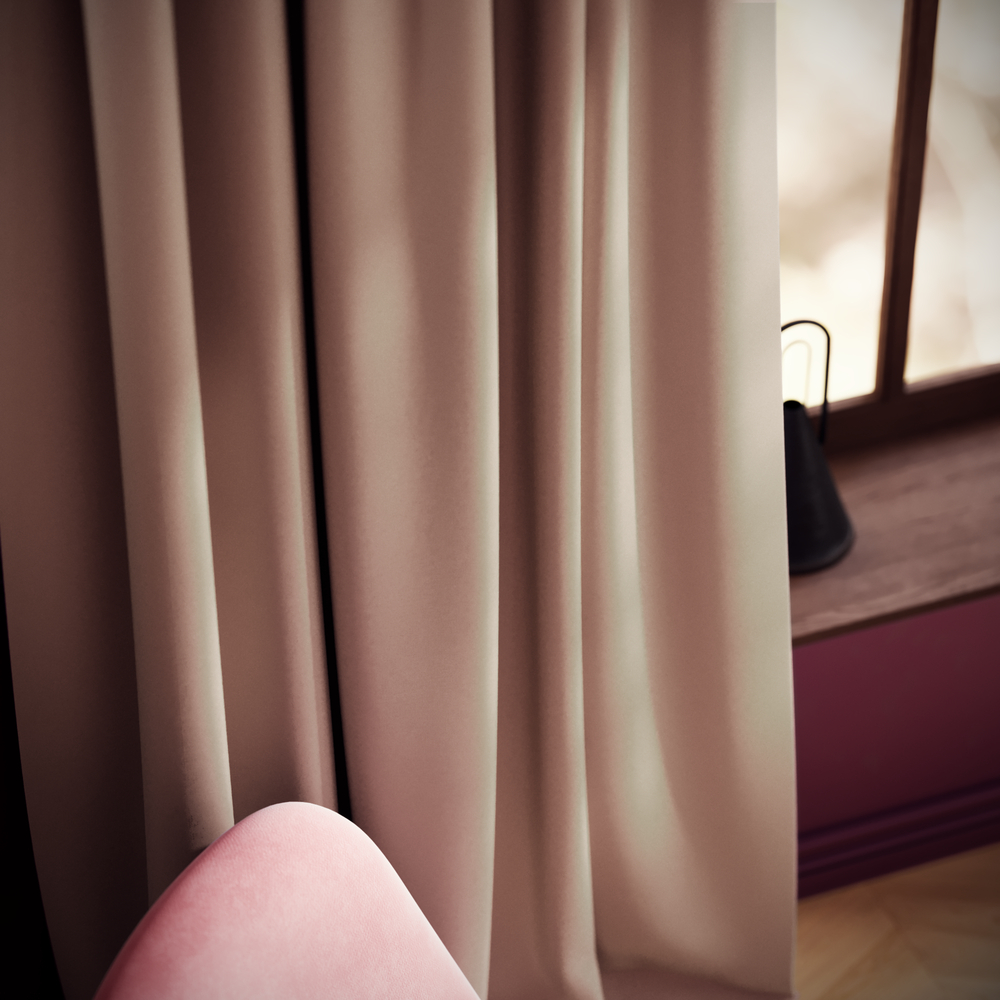 Truffle Taffeta is an elegant, matte-finish fabric available in an extensive color palette, from soft neutrals to bold purples and Bordeaux. Its changeant effect creates captivating shifts in color under different lighting, while its flame-retardant properties and 52% recycled polyester make it a functional, eco-friendly choice.