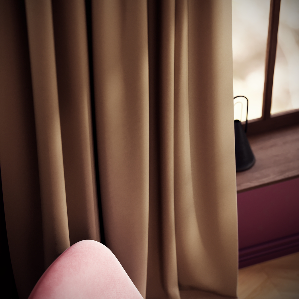 Truffle Taffeta is an elegant, matte-finish fabric available in an extensive color palette, from soft neutrals to bold purples and Bordeaux. Its changeant effect creates captivating shifts in color under different lighting, while its flame-retardant properties and 52% recycled polyester make it a functional, eco-friendly choice.