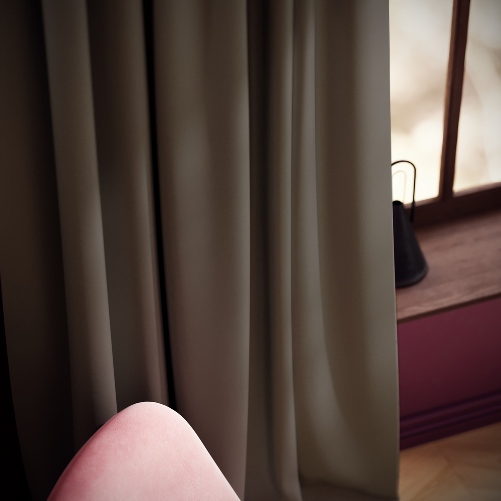 Truffle Taffeta is an elegant, matte-finish fabric available in an extensive color palette, from soft neutrals to bold purples and Bordeaux. Its changeant effect creates captivating shifts in color under different lighting, while its flame-retardant properties and 52% recycled polyester make it a functional, eco-friendly choice.