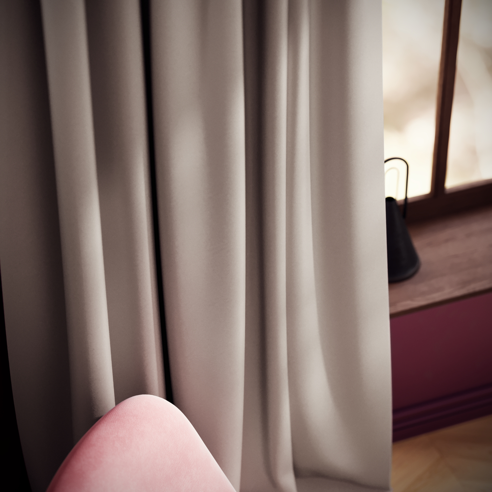 Truffle Taffeta is an elegant, matte-finish fabric available in an extensive color palette, from soft neutrals to bold purples and Bordeaux. Its changeant effect creates captivating shifts in color under different lighting, while its flame-retardant properties and 52% recycled polyester make it a functional, eco-friendly choice.