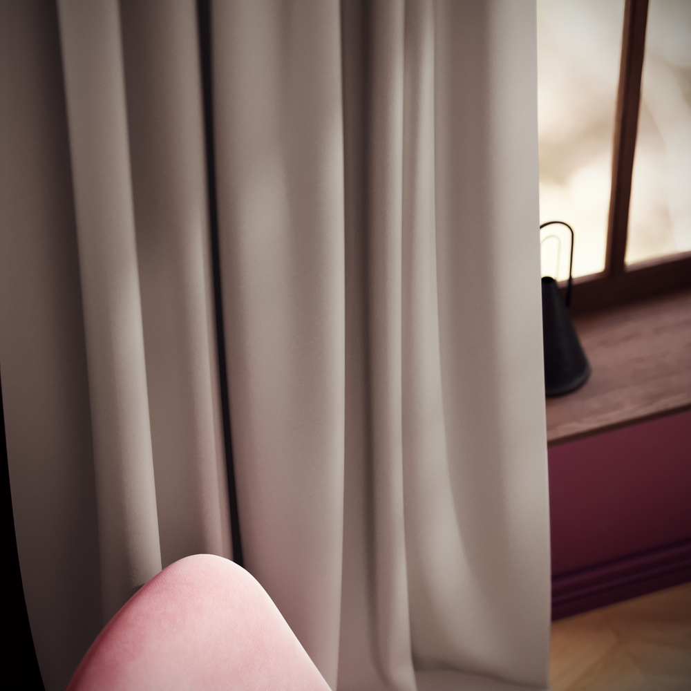 Truffle Taffeta is an elegant, matte-finish fabric available in an extensive color palette, from soft neutrals to bold purples and Bordeaux. Its changeant effect creates captivating shifts in color under different lighting, while its flame-retardant properties and 52% recycled polyester make it a functional, eco-friendly choice.
