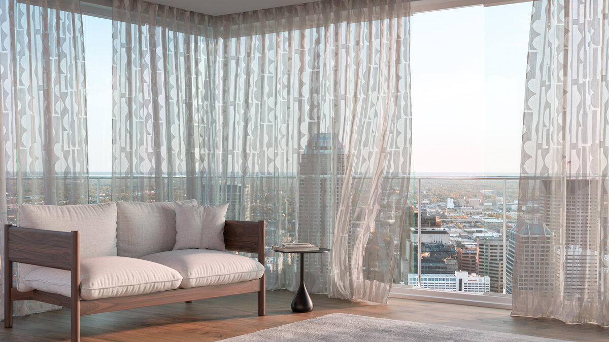 You’ll always have a great outlook with VIEW. The modern jacquard with Scherli technique maintains a fascinating transparence and enhances your windows with graphic freshness. Its cut edges provide three-dimensionality and character.